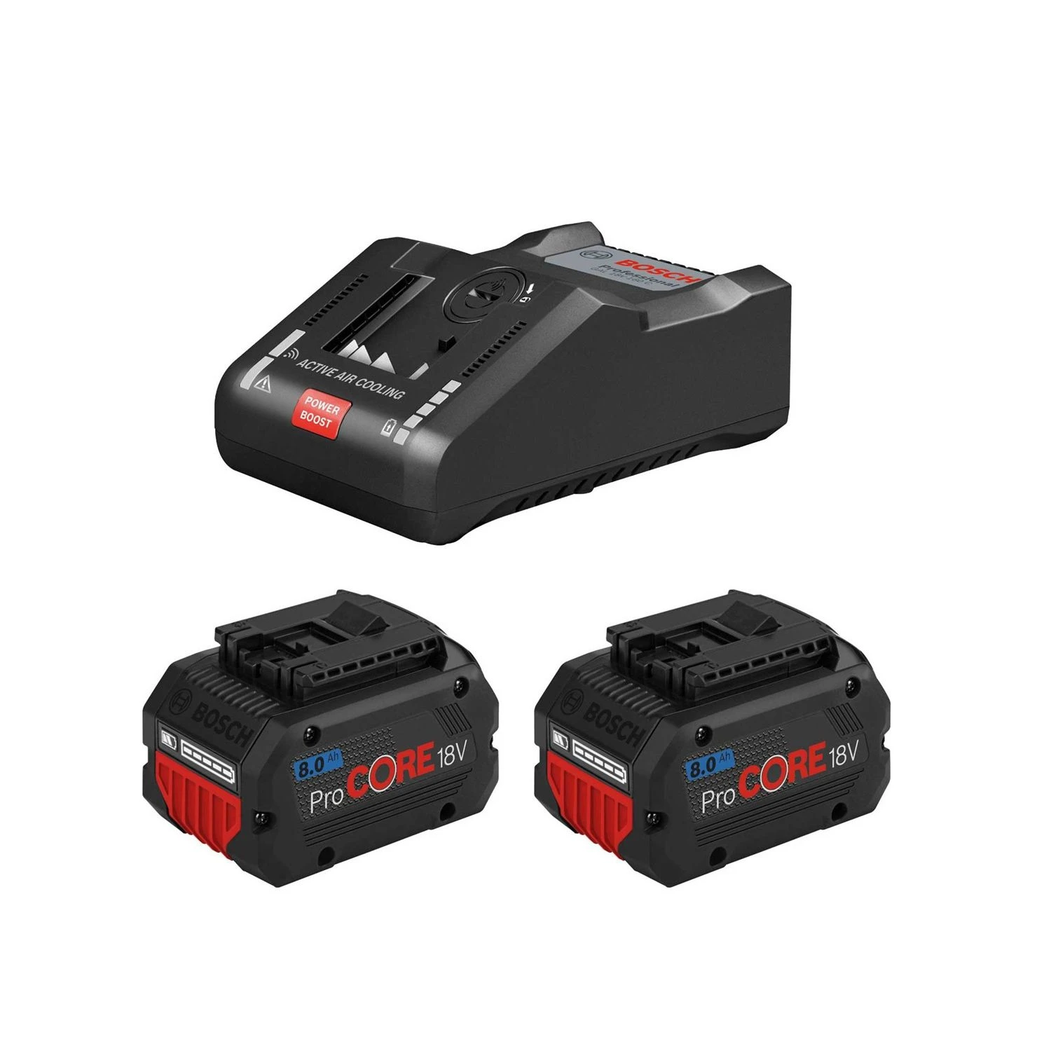 The Bosch 1600A016GR package gives you 2 x ProCORE18V 8.0Ah Batteries and a GAL 18V-160 C Charger. 100% compatible with all Bosch 18V Professional Power Tools. The Bosch 18V 8.0Ah ProCORE battery is especially designed for the most demanding tasks. Drill more holes, cut more wood and grind more metal with this top of the range battery. ProCORE batteries have a completely new cell design which allows for a high power rating, so you can get the most out of your professional tools. CoolPack 2.0 technology provides a new and improved cooling process which allows you and the tool to keep working. It’s compatible with all Bosch 18V Li-ion tools and chargers.