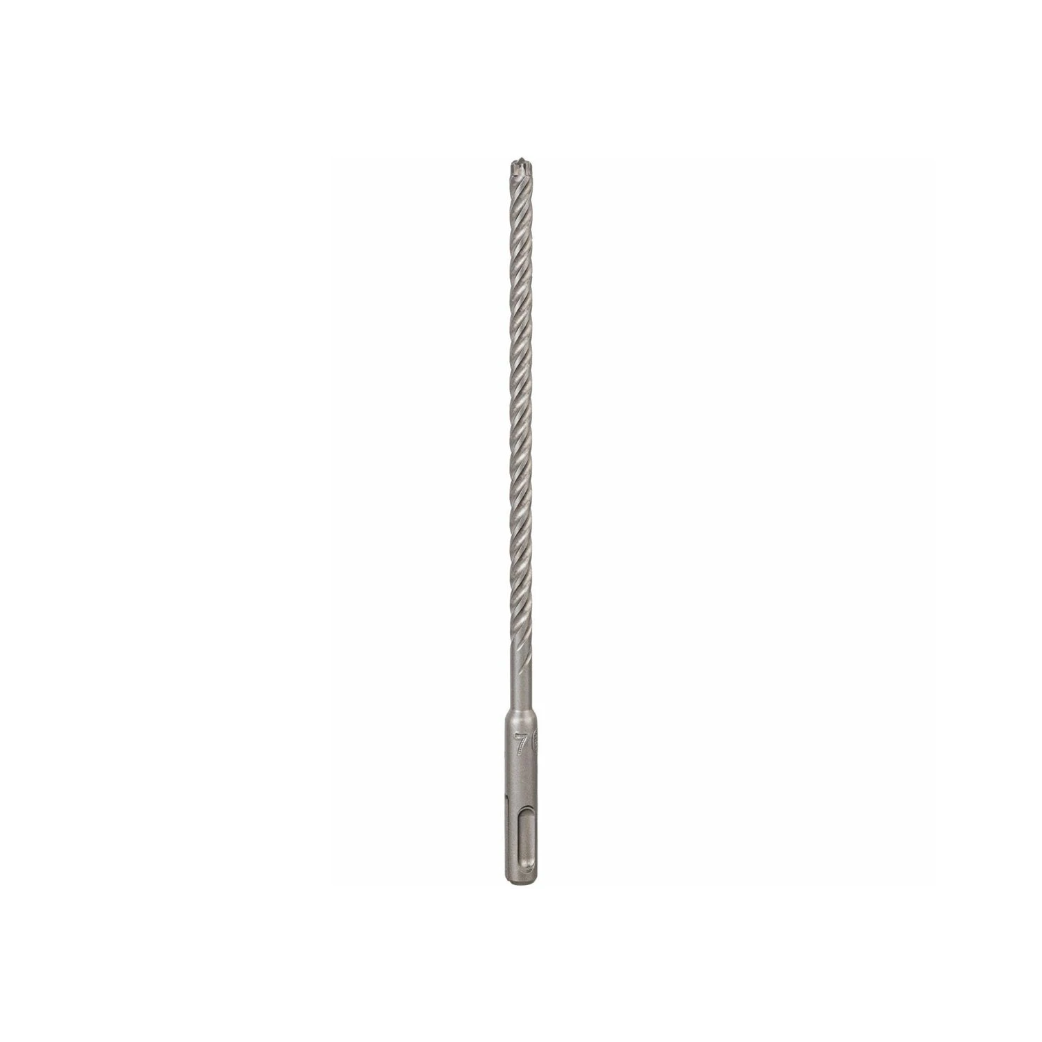 Bosch SDS-plus-7 drill bits provide accurate holes, even through rebar, whilst still being particularly durable. This Bosch SDS hammer drill bit has a solid tungsten carbide head with four-cutter geometry making it extremely robust. The main cutter is supported by the secondary cutters during drilling – this causes the concrete to be broken down into smaller particles, making it virtually impossible for the bit to get jammed in concrete with rebar. The result is a fast but smooth drilling action.