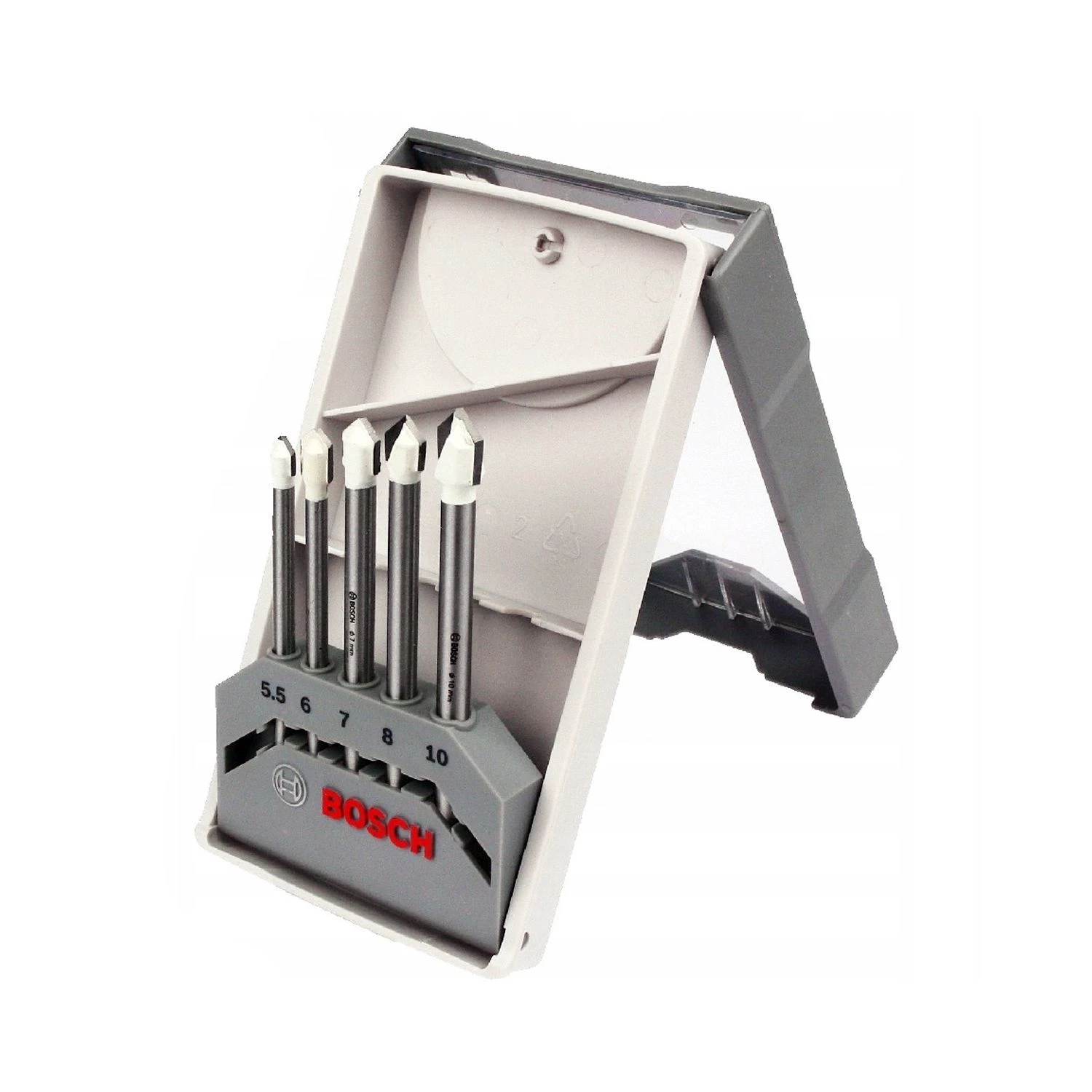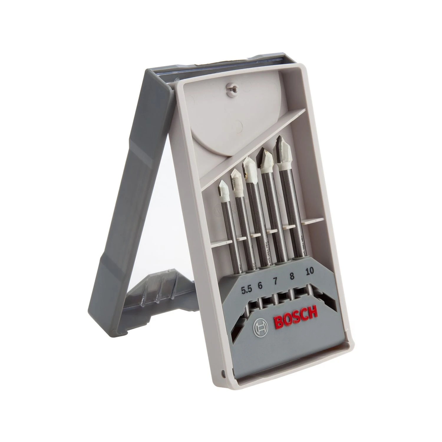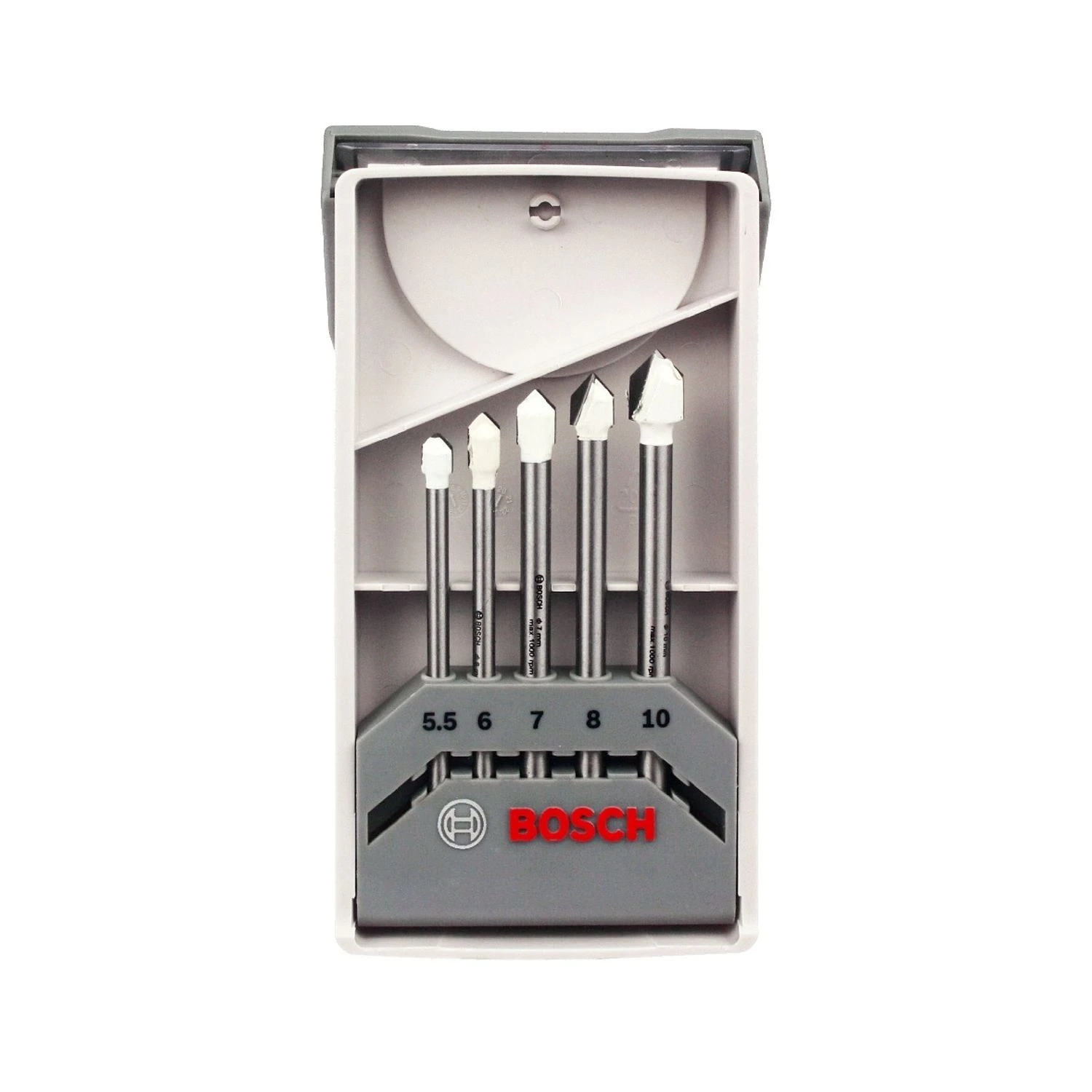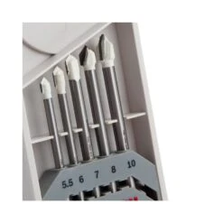 The Bosch 2608587170 CYL-9 Ceramic Tile Drill Bit Set contains 5 drill bits, and is a standard choice for dry drilling soft-to-medium hard tiles without lubrication. These bits can drill without impact at low speeds thanks to their simple flute-less design. This set is compatible with corded or cordless non-impact drills with a cylindrical shaft system.