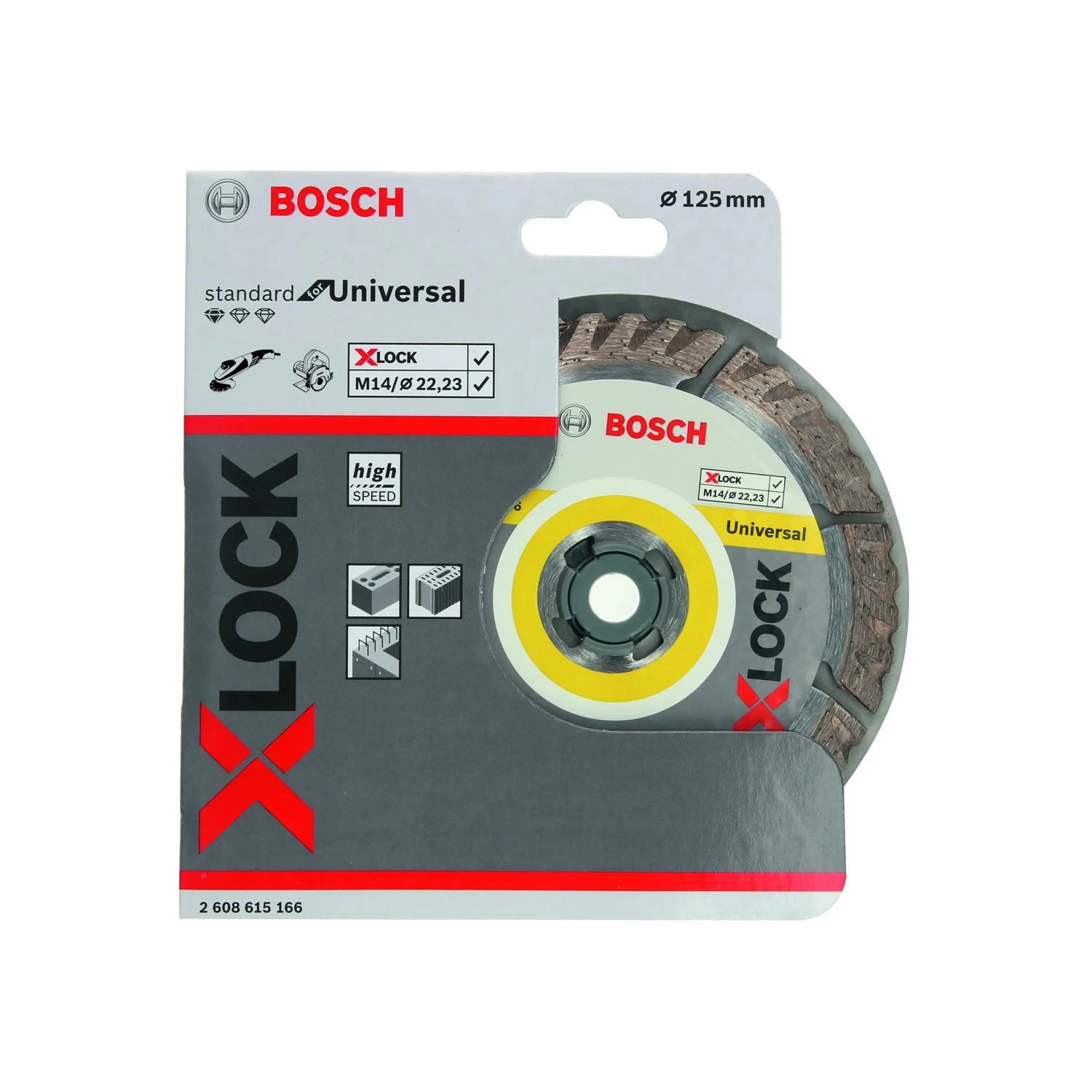 The Bosch 2608615166 grinder discs provide reliable cuts in universal building materials such as concrete, brick and limestone. These revolutionary discs make accessory changes fast and convenient thanks to the keyless X-LOCK system. Their optimised diamond matrix delivers solid results every time.