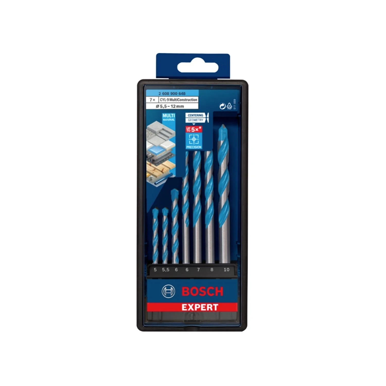 Bosch Multi Construction Drill Bit Set 7 piece is a first choice drill bit for the building trade right now. If you want a drill bit in your tool kit that can do the lot, then this is the one for you. This drill bit can be used in impact drilling mode for concrete and stone as well as in turning mode for bricks, tiles, sheets, wood and plastic. You’re also always sure to have precise drilling with the patented Bosch centring geometry.