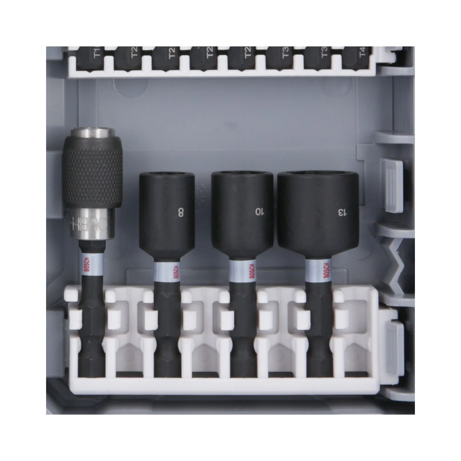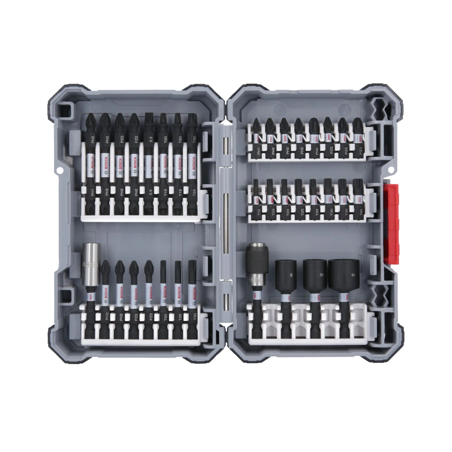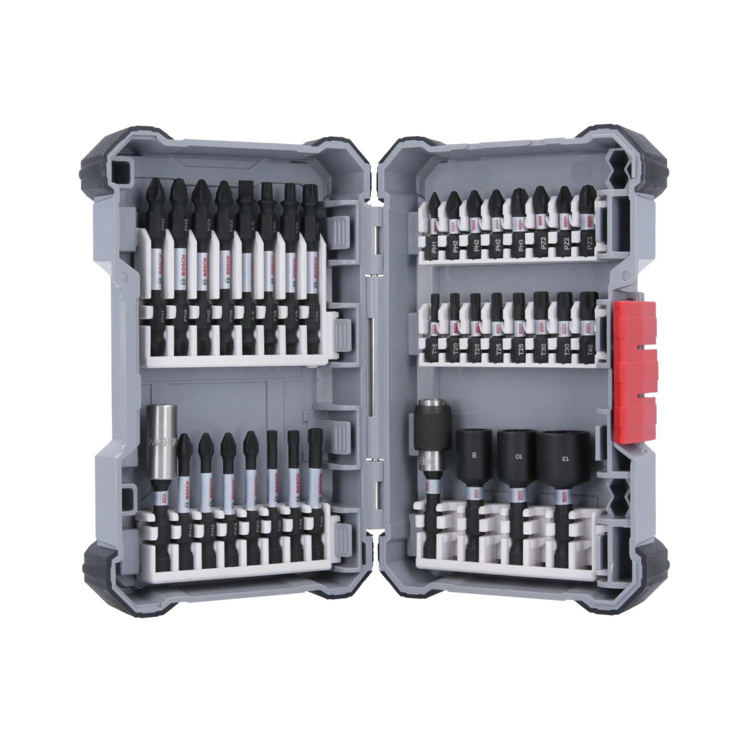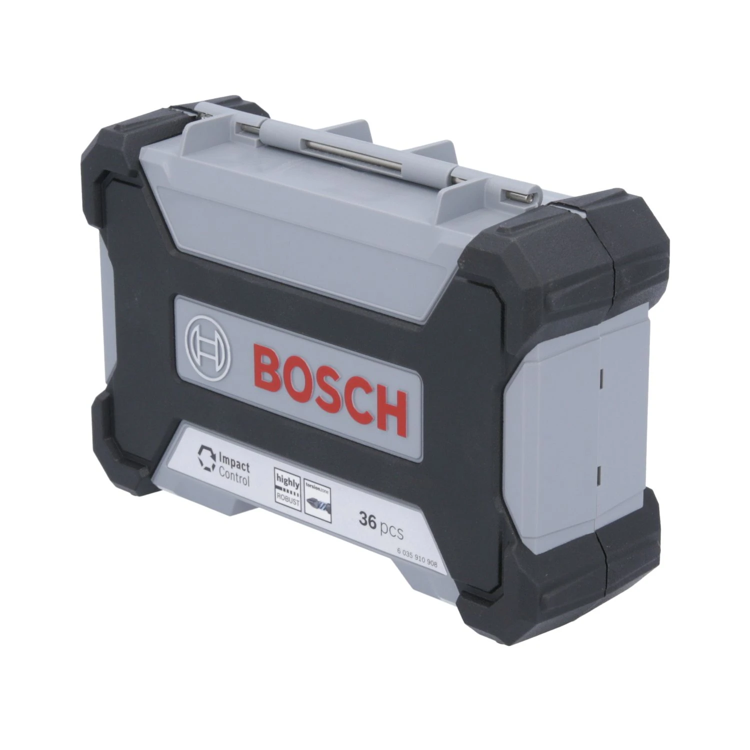 This 36 piece Screwdriver Bit Set from Bosch can be used for everyday and heavy duty applications. The drill bits are suitable for drilling in most metal materials. The special formulated V steel alloy this set can be used with high voltage impact drivers because of their extreme toughness. Torsion control helps withstands the stress of high torque applications. The Drill and Screwdriver Bits have a black oxide finish with diamond ground cutting edges. The centering tip has been designed for precise drilling and good guidance before drilling holes.