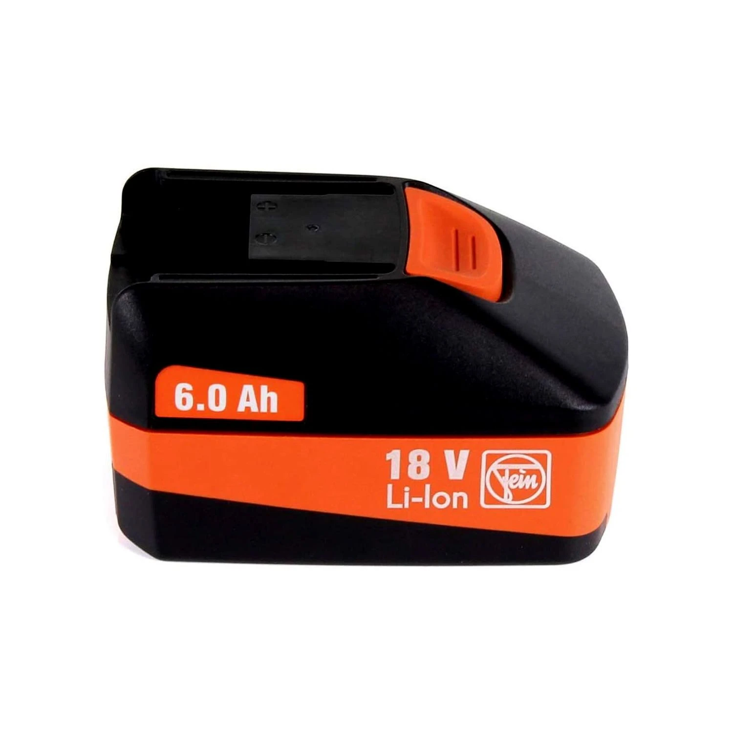 Fein 18V Li-ion 6.0Ah battery with charge status indicator and FEIN Safety Cell technology. Protects the battery and tool from overload, overheating and total discharge. Can be used with all FEIN 18 V cordless tools.