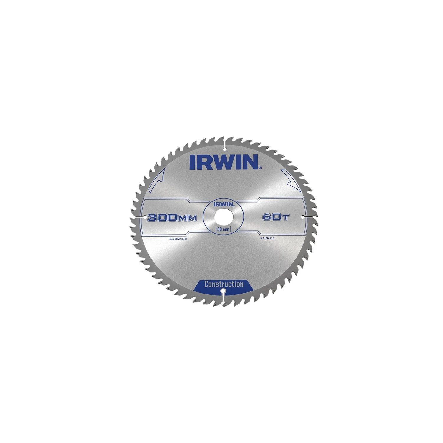 IRWIN General Purpose Table & Mitre Saw Blade with construction grade tungsten carbide tips that retain their edge for longer and are resharpenable. Expansion slots help to dissipate heat and prevent warping. The blades have a fully hardened plate that runs truer for longer and with more accuracy.