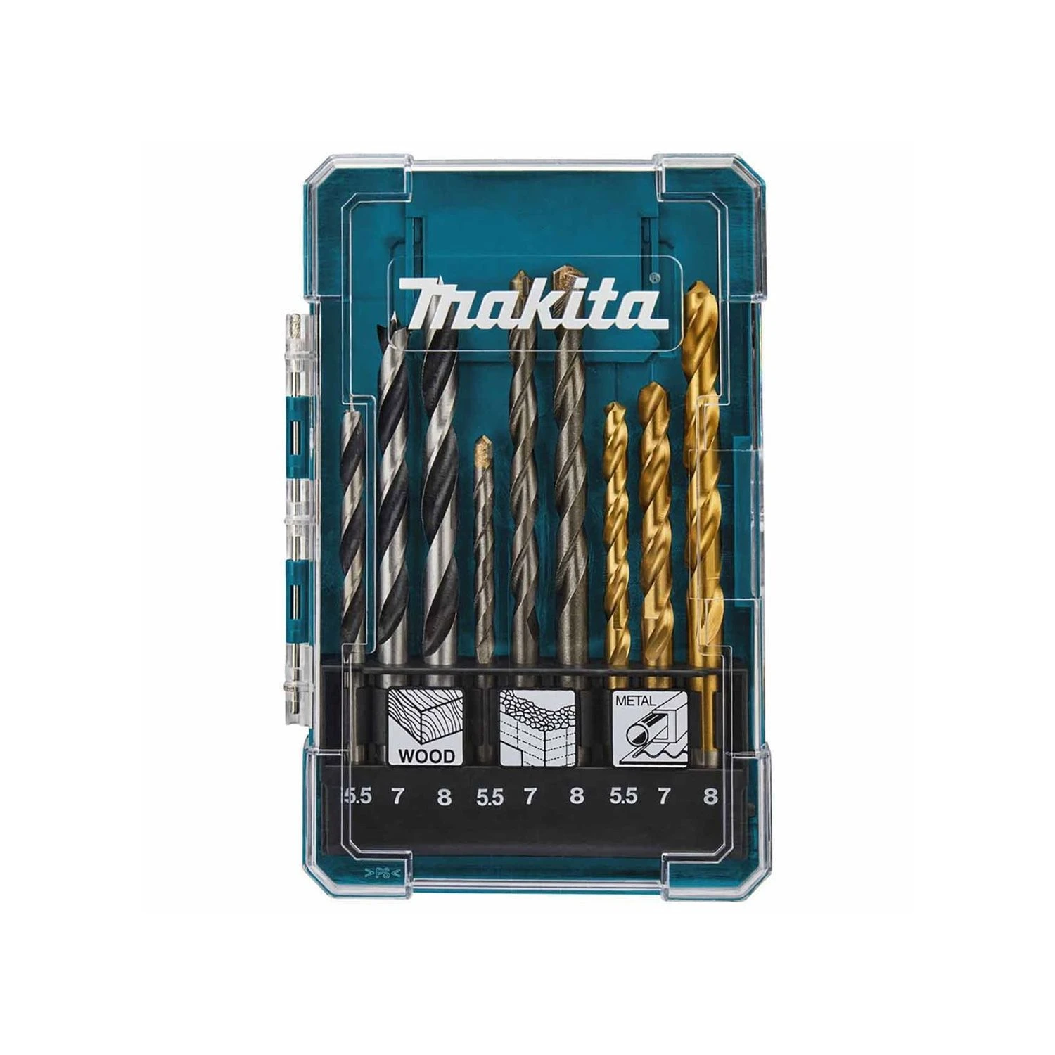 The Makita D-71978 drill bit set is suitable for drilling metal, masonry and wood. The D-71978 contains 3 brad point drill bits for wood, 3 HSS drill bits for metal and 3 TCT drill bits for masonry.