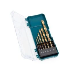 The Makita D-72833 is a 6 Piece Drill Bit Set suited to drilling in Metal, all with straight shanks. The Set has 6 different sized Drills: 2, 3, 4, 5, 6 and 8mm. HSS-TiN is High Speed Steel with a titanium-nitride coating, this means that they produce minimal levels of friction and therefore reduces friction deposits. TiN-coated drill bits should last longer than uncoated bits, and you can often push them faster too. The high surface quality of this ground twist drill bit allows extended usage.
