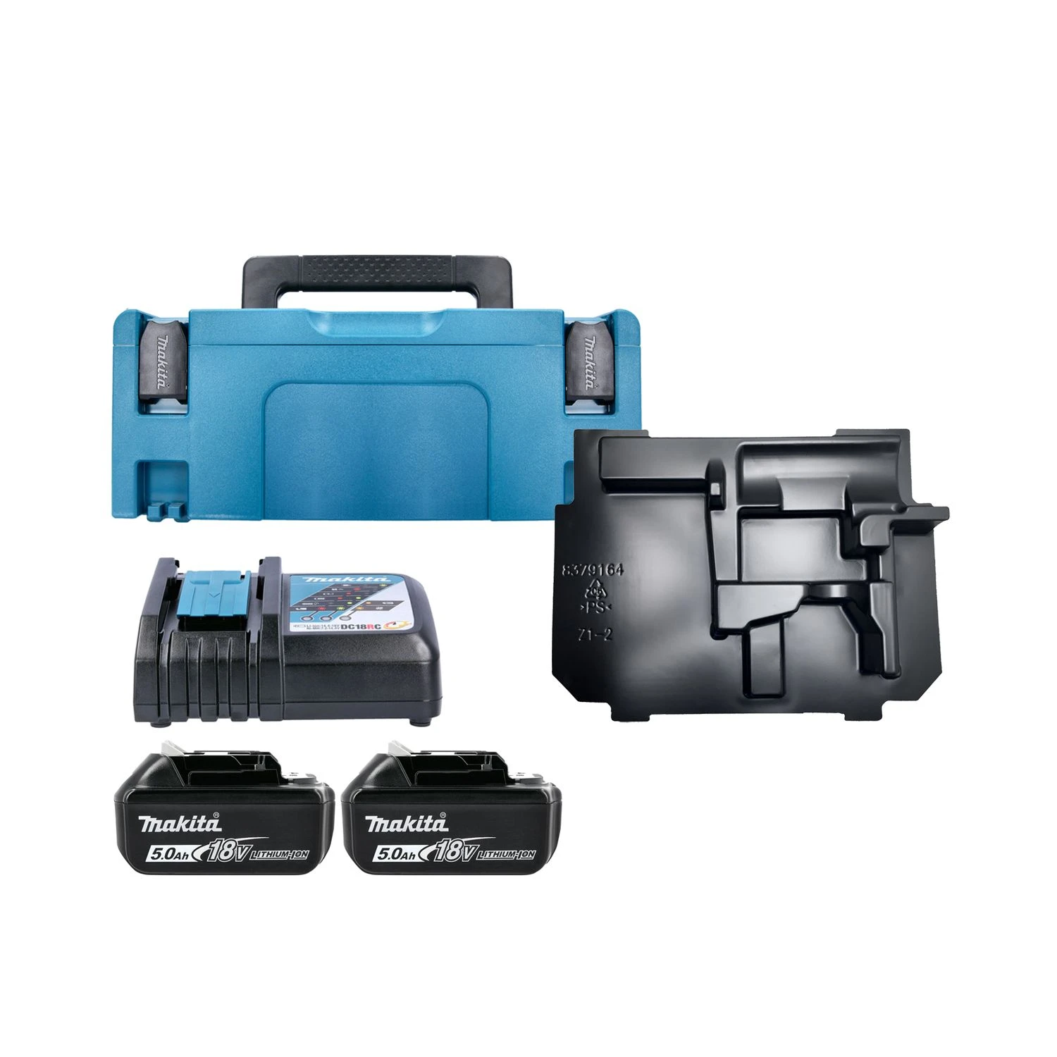 Makita Genuine BL1850 18V Li-Ion LXT 5.0Ah Battery Twin Pack With Charger, Type 2 Case & Inlay