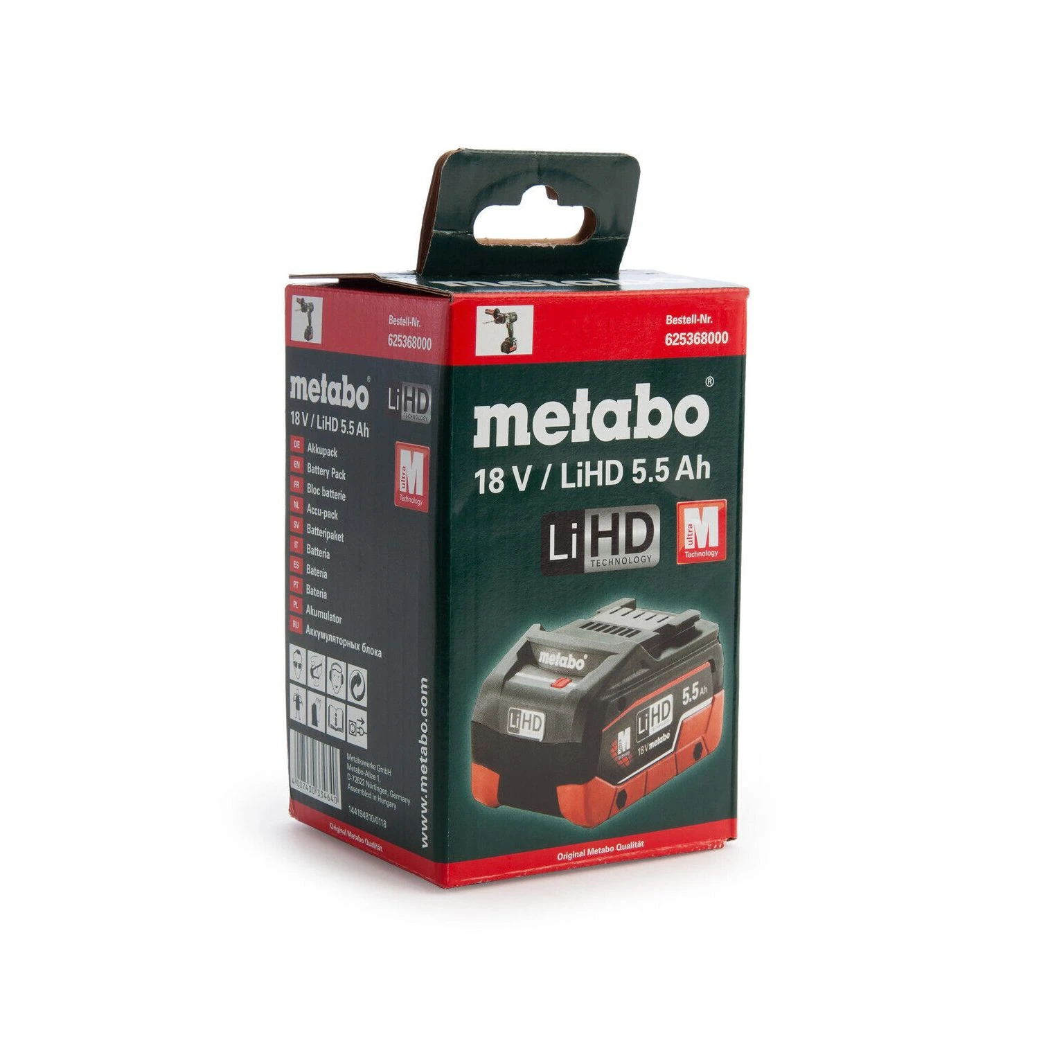 The Metabo 625368000 is an 18V battery pack with 5.5Ah capacity. These batteries are extremely long-lasting and durable thanks to their permanent electronic single cell protection (ESCP) and Air Cooled technology. They feature a capacity display with almost no self-discharge making them ideal for the most demanding applications.