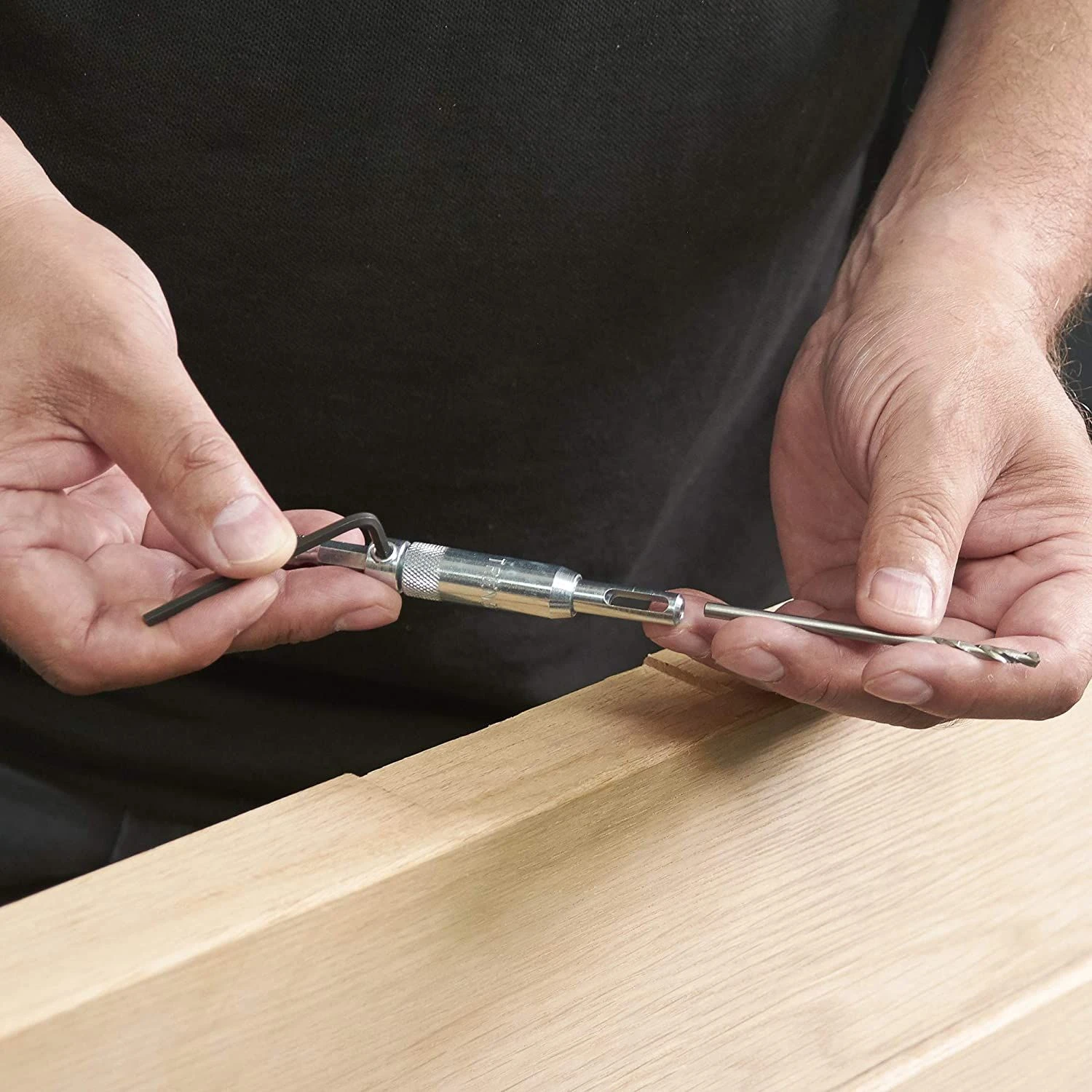 These spring loaded drill bit guides are self centring and are used for accurate drilling of holes for fittings such as hinges to ensure exact alignment. They can be easily dismantled for cleaning and are supplied with a HSS Drill Bit.This set comprises a quick chuck and three sizes of drill bit guides for accurate fitting of hinges. Contents: 1 x Quick chuck.1 x Drill bit guide 5/64in.1 x Drill bit guide 7/64in.1 x Drill bit guide 9/64in. SNAP/DBG/SET Drill Bit Guide Set with Quick Chuck – 5/64in, 7/64in & 9/64in