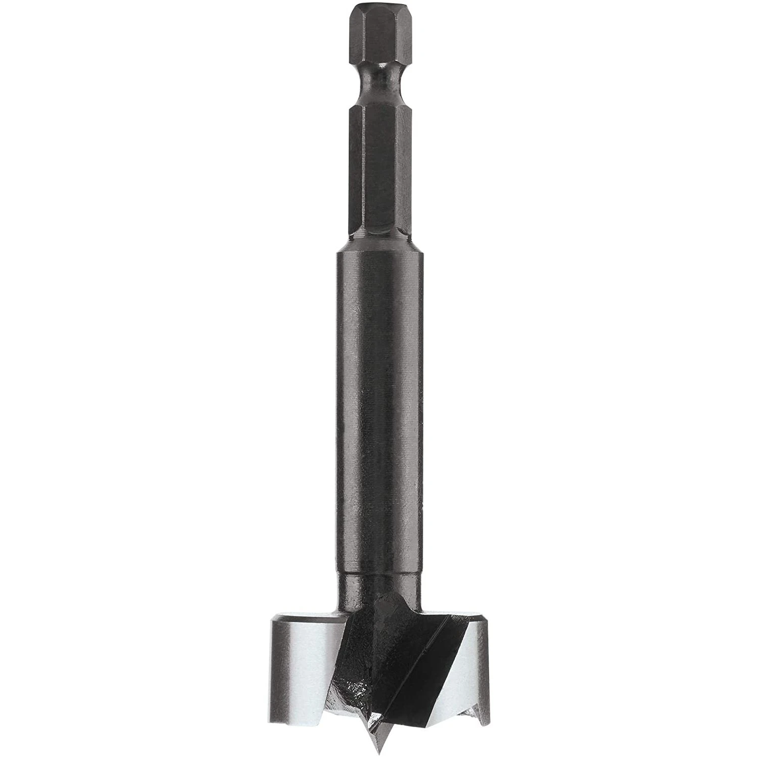 High quality forged and ground carbon steel short Forester bit for drilling accurate holes.For use with the Trend snappy quick chuck.Clean, precise holes in softwood and hardwood.Will also drill overlapping holes.Forged steel provides longer life before resharpening.With centre point, Two peripheral cutting edges and two lifters.