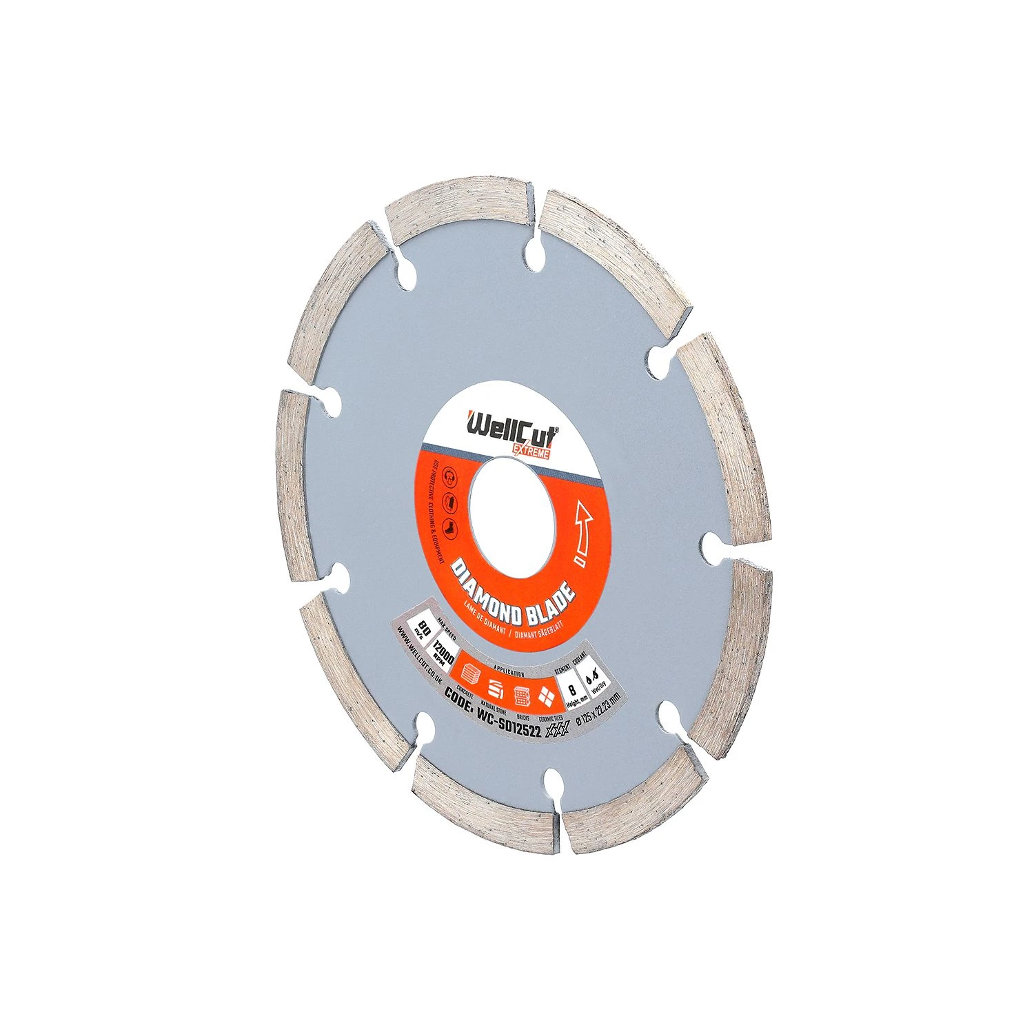 This diamond blade cutting disc from WellCut® will make cutting with your angle grinder a piece of cake. The general purpose diamond blade is designed for use with most 125 mm angle grinders and is ideal for cutting hard materials such as concrete, natural stone, sandstone, granite, brick, limestone and pavement slabs, amongst others. Measuring 8mm thick with a 125mm diameter and 22mm bore, the disc features a series of keyhole gullets which make the action slightly more aggressive than smooth discs and also helps remove material from the cutting surface as you work. The blade is suitable for wet and dry cutting: Using a diamond blade when wet helps to prevent it from overheating and also minimises dust for a cleaner cut. You’ll be guaranteed 5-star performance from this diamond blade for angle grinder, thanks to the premium quality of the diamond coating. This also increases the durability of the product, as well as its lifespan, making it excellent value for money. The diamond disc cutting blade angle grinder is designed to fit all major brands of angle grinders, including the DeWalt angle grinder, Makita angle grinder, or the Milwaukee angle grinder.