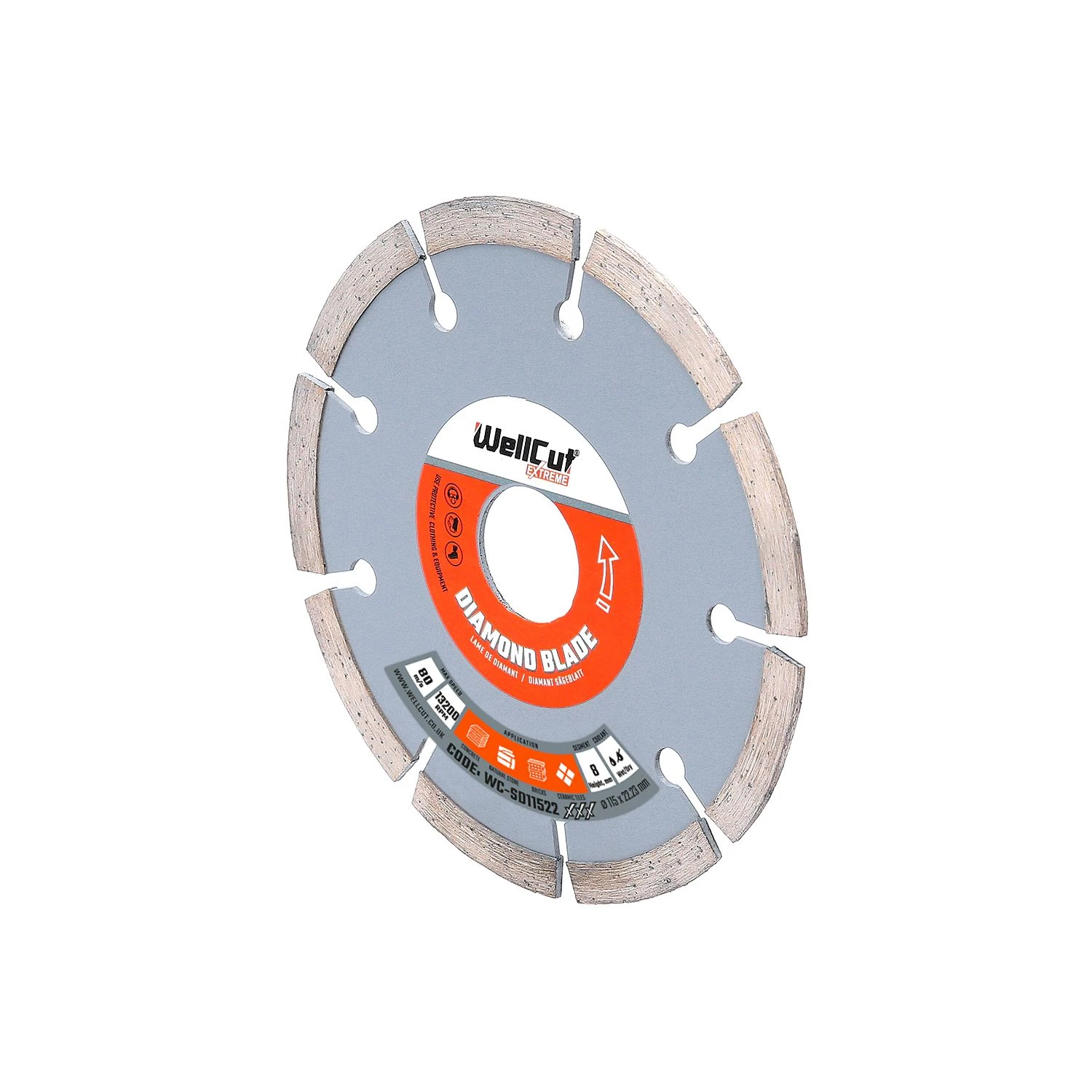 WellCut®’s general purpose diamond blade cutting disc is designed for use with most 115 mm angle grinders and is ideal for cutting hard materials such as concrete, natural stone, sandstone, granite, brick, limestone, and pavement slabs, amongst others. Measuring 8mm thick with a 115mm diameter and 22mm bore, the disc features a series of keyhole gullets which make the action slightly more aggressive than smooth discs and also helps to remove material from the cutting surface as you work. The blade is suitable for wet and dry cutting: Using a diamond blade when wet helps to prevent it from overheating and also minimises dust for a cleaner cut. You’ll be guaranteed 5-star performance from this diamond blade for angle grinder, thanks to the premium quality of the diamond coating. This also increases the durability of the product, as well as its lifespan, making it excellent value for money. The diamond disc cutting blade angle grinder is designed to fit all major brands of angle grinders, including the DeWalt angle grinder, Makita angle grinder, or the Milwaukee angle grinder.