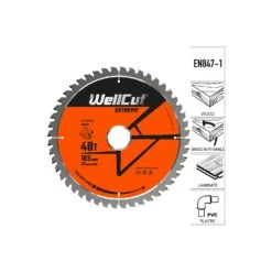 Perfection can be achieved with WellCut®’s 48T, 20mm Bore Extreme Circular Saw Blade. The cleverly crafted blade is designed with an Alternate Top Bevel tooth shape, suitable for cutting various materials, including hardwood, softwood, particle board, and Medium Density Fiberboard (MDF). With an impressive 48 Teeth, this wood cutting circular saw blade is recommended for both rip and cross-cutting. Not only this, its laser-cut body will ensure you get accurate and straight cuts. This tool accessory will keep its quality when maintained with your favourite circular saw blade sharpener, making it last for years to come. What’s more, this essential product is made of premium tungsten carbide teeth with a 17° positive rake angle for increased durability and standard of performance. At a 1.5mm cutting kerf, this professional circular saw blade is ultra-thin, resulting in less wood debris and decreased push force when in use, so you won’t lose your breath while cutting. Its lightweight design makes this saw blade ideal for cordless circular saws, including your Makita circular saw, your DeWalt Circular saw, your Bosch circular saw, and many more well-known brands of circular saws.
