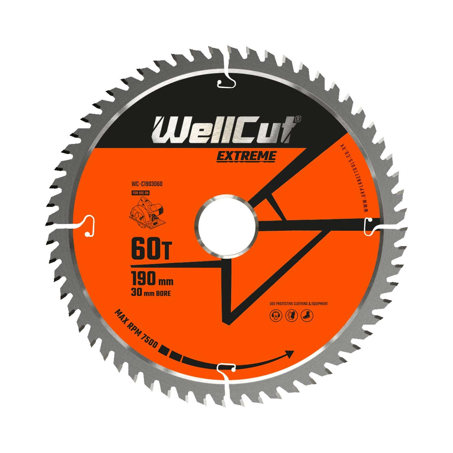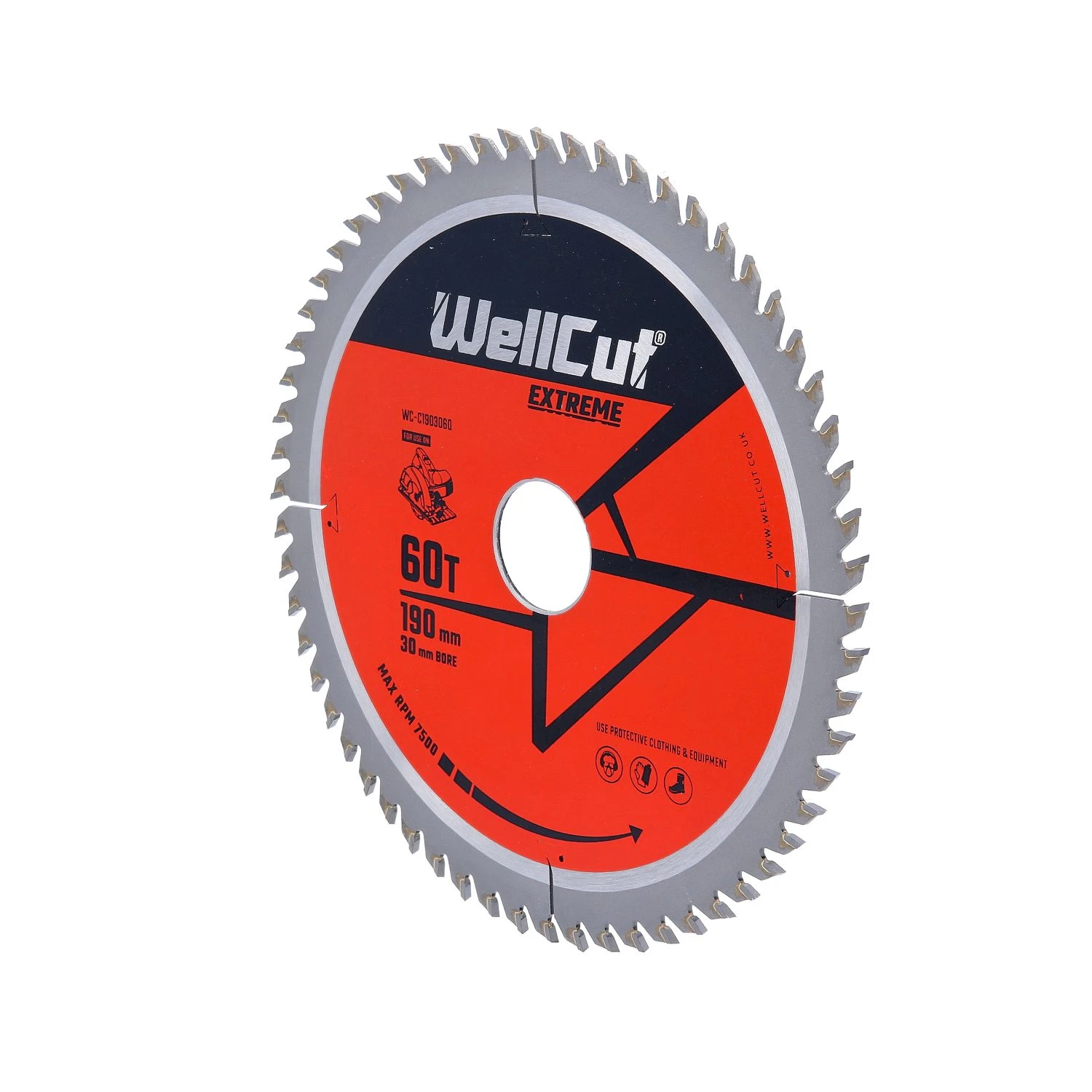 Cut away with WellCut®’s 60T, 30mm Bore Extreme Circular Saw Blade. The sharp saw blade is designed with an Alternate Top Bevel tooth shape, suitable for general purpose cutting of various materials, including hardwood, softwood, particle board, and Medium Density Fiberboard (MDF). With an impressive 60 Teeth, this wood cutting circular saw blade is recommended for very clean, fine cuts. Not only this, its laser-cut body will ensure you get accurate and straight cuts. This tool accessory will keep its quality when maintained with your favourite circular saw blade sharpener, making it last for years to come. What’s more, this essential product is made of premium tungsten carbide teeth with a 17° positive rake angle for increased durability and standard of performance. This saw blade is ideal for use with a variety of different professional circular saw tools, including cordless circular saws. Use it with your Makita circular saw, your DeWalt Circular saw, your Bosch circular saw, and many more well-known brands of circular saws.