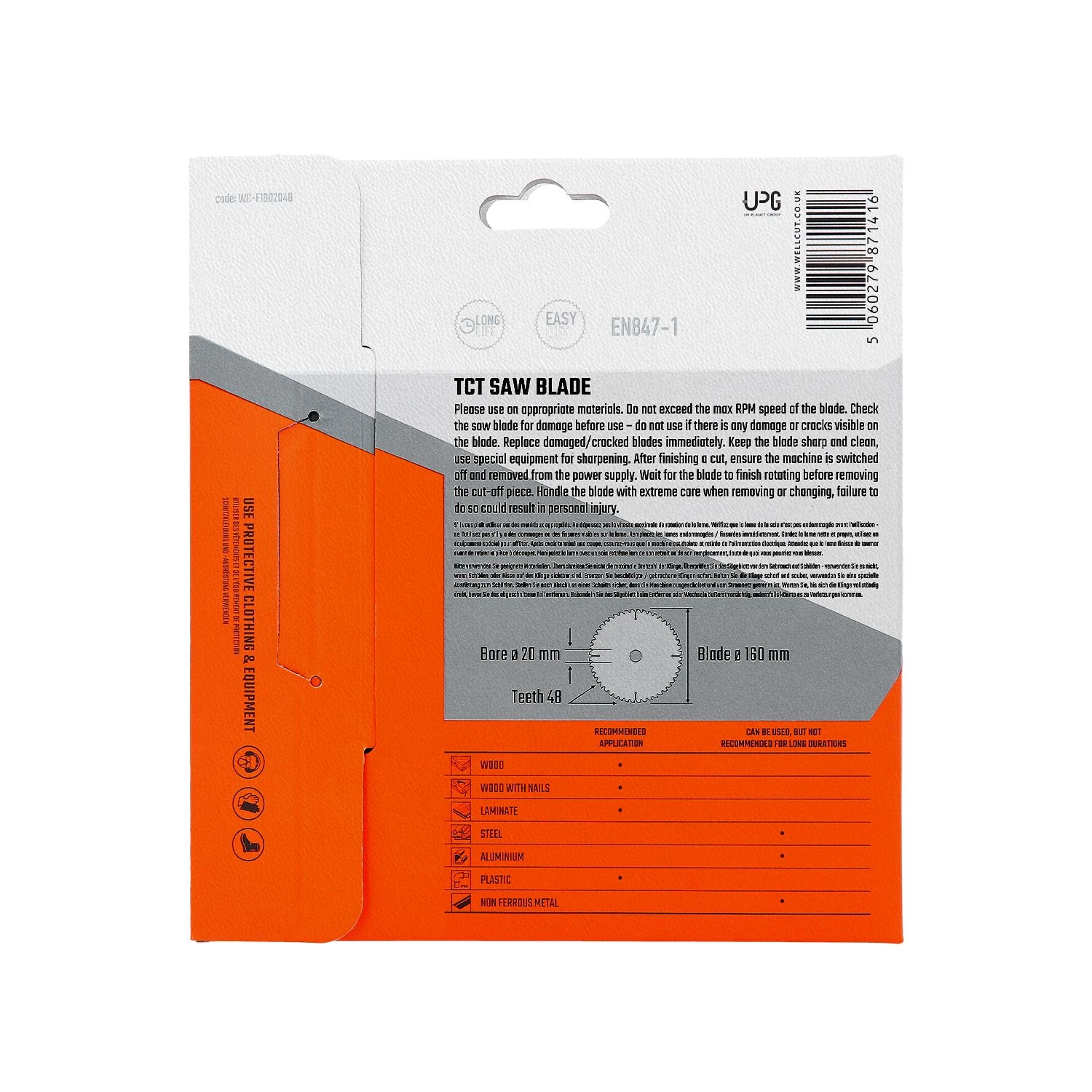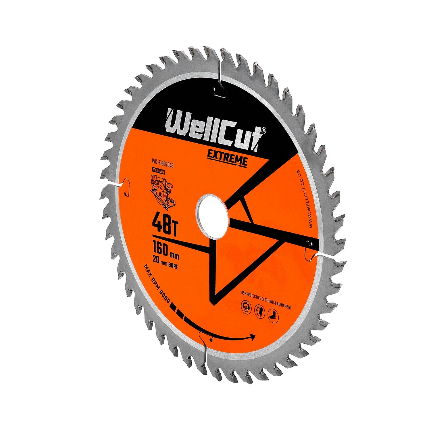 Flawlessly cut wood is at your fingertips with WellCut®’s 48T, 20mm Bore Extreme Circular Saw Plunge Saw Blade. The sharp saw blade is designed with an Alternate Top Bevel tooth shape, meaning you can safely and easily cut hardwood, softwood, particle board, and Medium Density Fiberboard (MDF). With an impressive 48 Teeth, this wood cutting circular saw blade is great for both rip and cross-cutting. Not only this, its laser-cut body will ensure you get accurate and straight cuts. This tool accessory will keep its quality when maintained with your favourite circular saw blade sharpener, making it last for years to come. What’s more, this essential product is made of premium tungsten carbide teeth with a 17° positive rake angle for increased durability and standard of performance. This saw blade is ideal for use with a variety of different professional circular saw and plunge saw tools, including cordless saws. Use it with your Makita circular saw, your DeWalt Circular saw, your Bosch plunge saw, and many more well-known brands of circular saws.