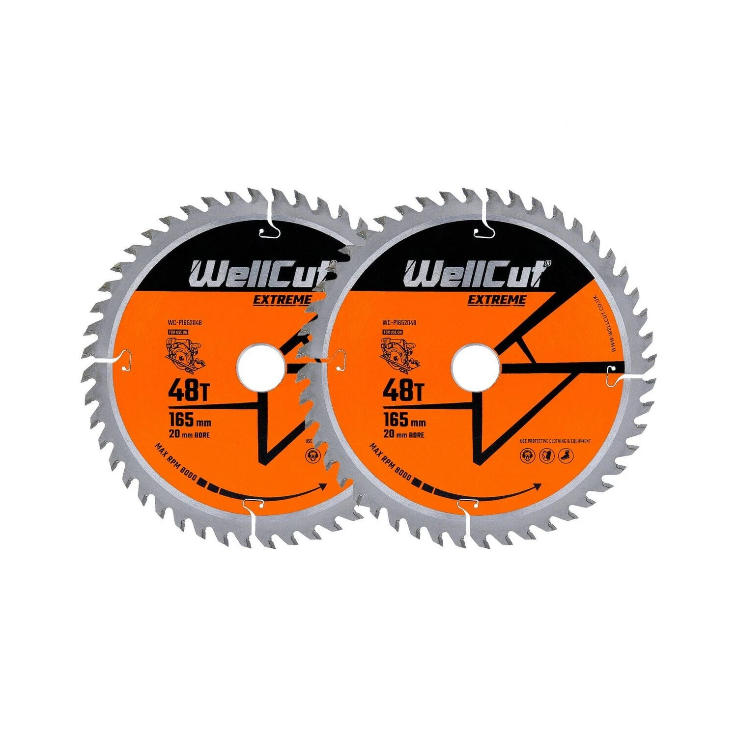 WellCut® TCT Extreme Circular Saw Plunge Saw Blade 165mm X 20mm X 48T, Suitable For SP6000, DWS520, DCS520, GKT55 Pack Of 2